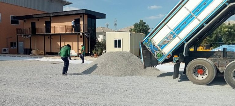 หินคลุก สเปค เกรดเอ จัดส่ง สำหรับ ทำลานจอดรถ ร้านกาแฟ ได้บรรยากาศธรรมชาติ หน้างาน บริเวณถนนงามวงศ์วาน – แคราย