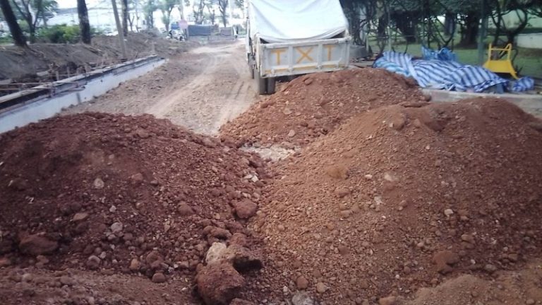 ลูกรัง หรือ ดินลูกรัง หน้างาน: ถนนราชพฤกษ์ – ต.อ้อมเกร็ด อ.ปากเกร็ด จ.นนทบุรี งานแก้ซอฟท์ ให้กับพื้นที่อ่อนนุ่ม ในไซต์งานก่อสร้าง