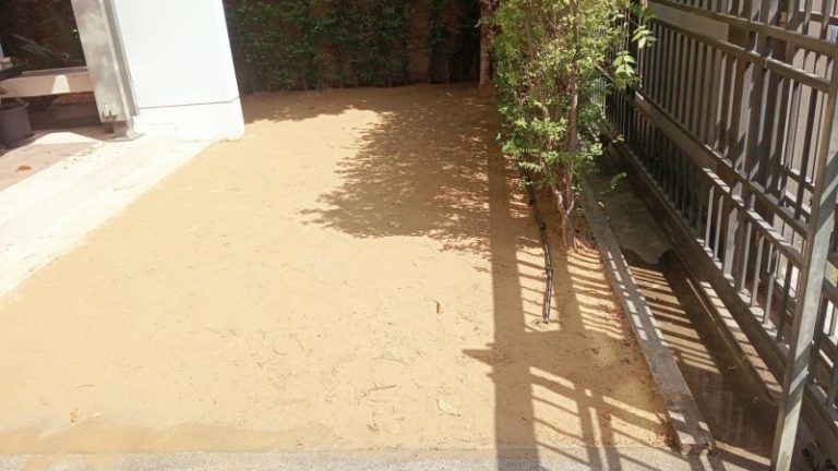 ทรายถม หรือ ทรายขี้เป็ด สำหรับ ปรับระดับ พื้นที่รอบบ้าน แก้ปัญหาดินทรุด หน้างาน ตำบลท่าอิฐ อ.ปากเกร็ด จ.นนทบุรี